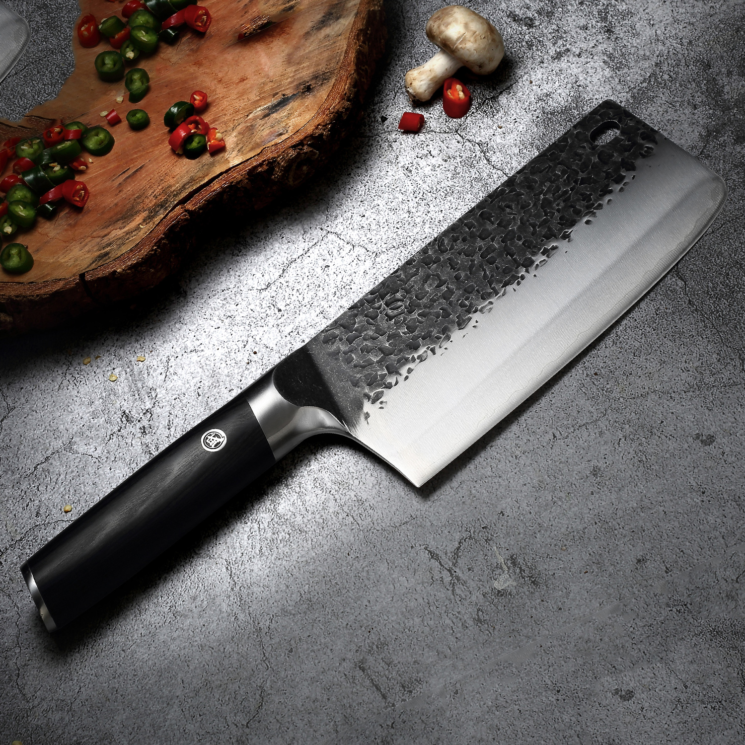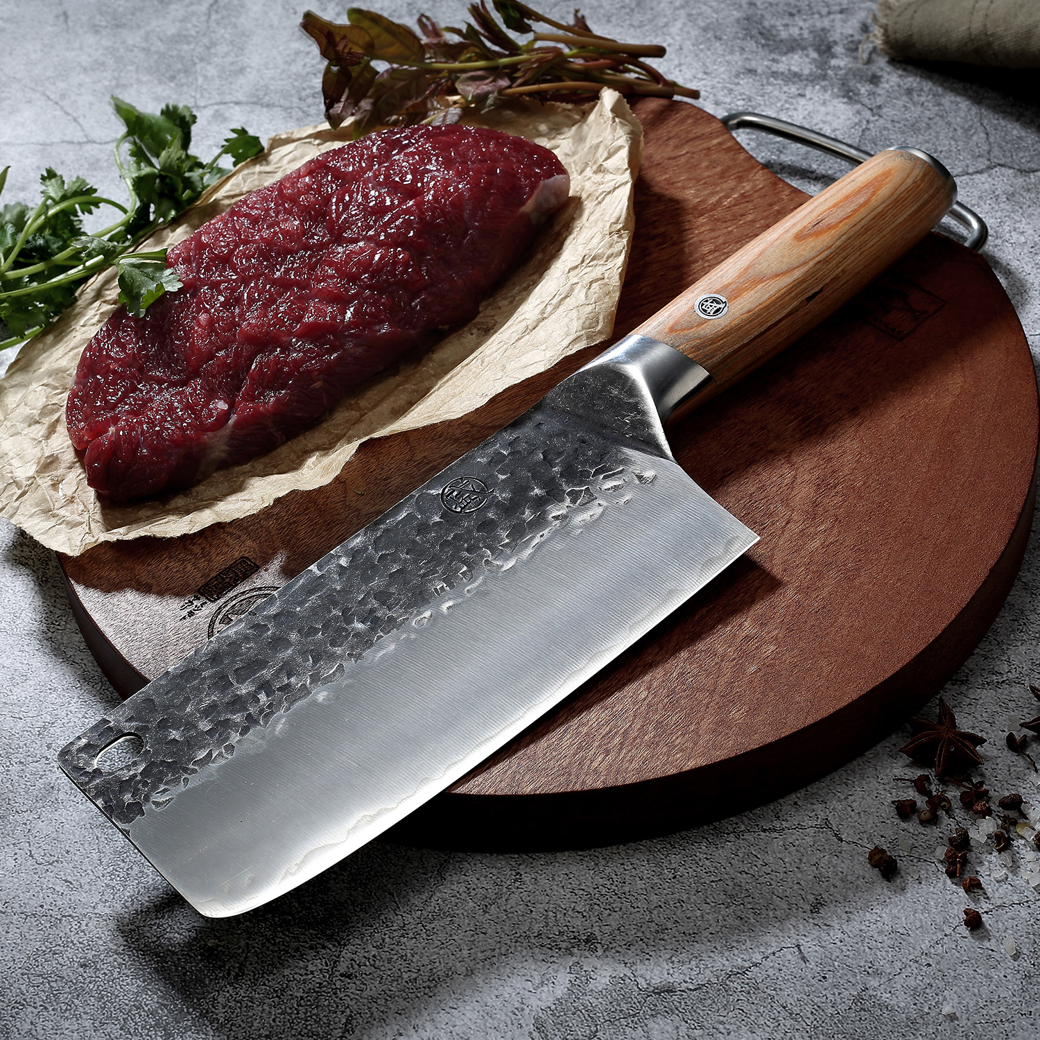 • 高温锻打锤纹面,提升钢材密度和纯度,黑化处理表面氧化层,防锈更好。